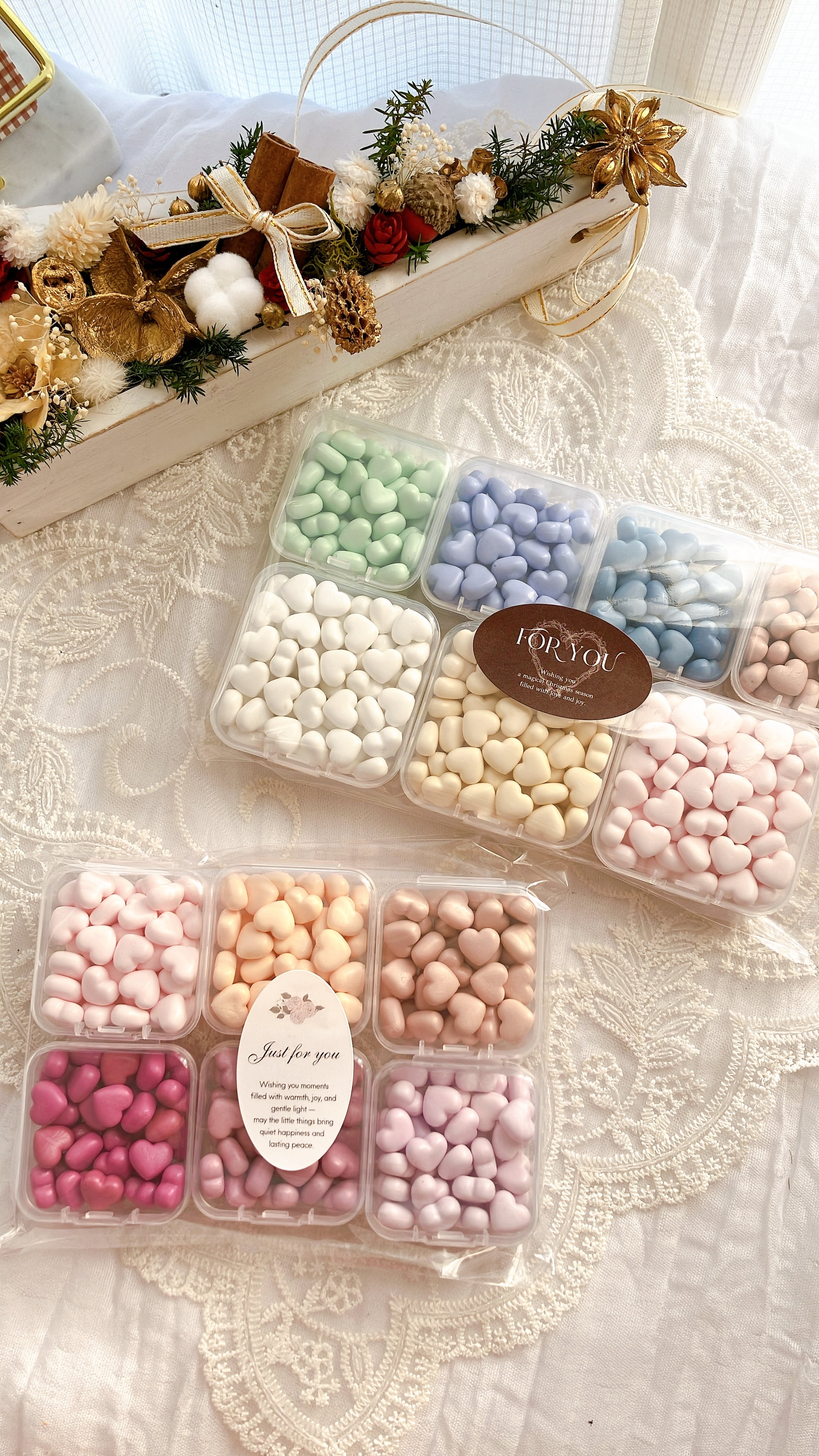 たっぷり60gがランダムに入った お楽しみワックスパック♡ 単品購入より200円お得なセットです! 個数制限はありません・:*+. ※複数ご購入いただいた場合は、カラーが少し被る場合もございます。 シーリングスタンプに使用するワックスになります! 普段私が制作に使用しているおすすめワックス。 見た目も可愛く粘度もちょうど良いのでおしやすいです。 【カラー】 どのカラーのセットが届くのかお楽しみ♡ 完全ランダムになります! ※マットカラーがメインですが、パール系多めのセットもあります。 ※ハートワックス or スターワックスどちらかお選びください。 写真のようなセットが届きます! 届いてからのお楽しみ♡ 日頃挑戦しないカラーが届くかも・:*+. 自然光下で撮影しておりますが 多少実物と差異が生じますことご了承ください。 このまま単色で使っても良し お好きにミックスしても可愛い 万能パックになります・:*+. 撮影小物としても◎ 【内容量】 15g×4カラー 合計60g 約30-40枚のシーリングスタンプを作ることができます・:*+. 【こだわり】 こだわりはInstagramでも発信してますので ぜひそちらもご覧頂けますと幸いです。 【注意点】 ワックスに細かな不純物が含まれる場合がございます。 使用上には問題ありませんので、溶かした後に 爪楊枝等で取り除いてご使用ください。 【発送方法】※3,000円以上で送料無料 クリックポスト(追跡あり、土日祝日配達あり) 発送通知と一緒に追跡番号をお知らせいたします。